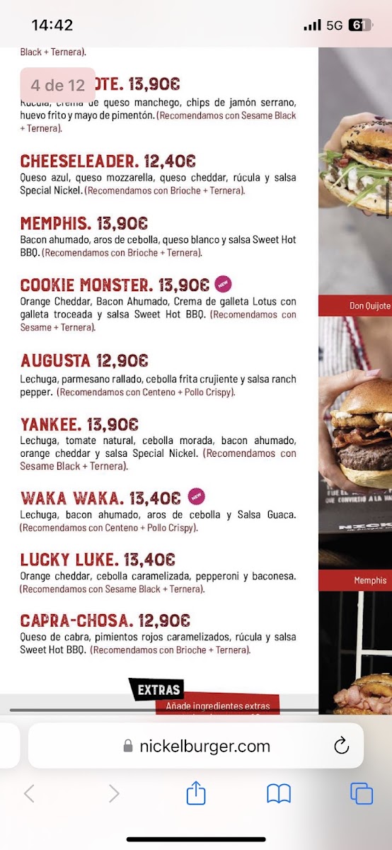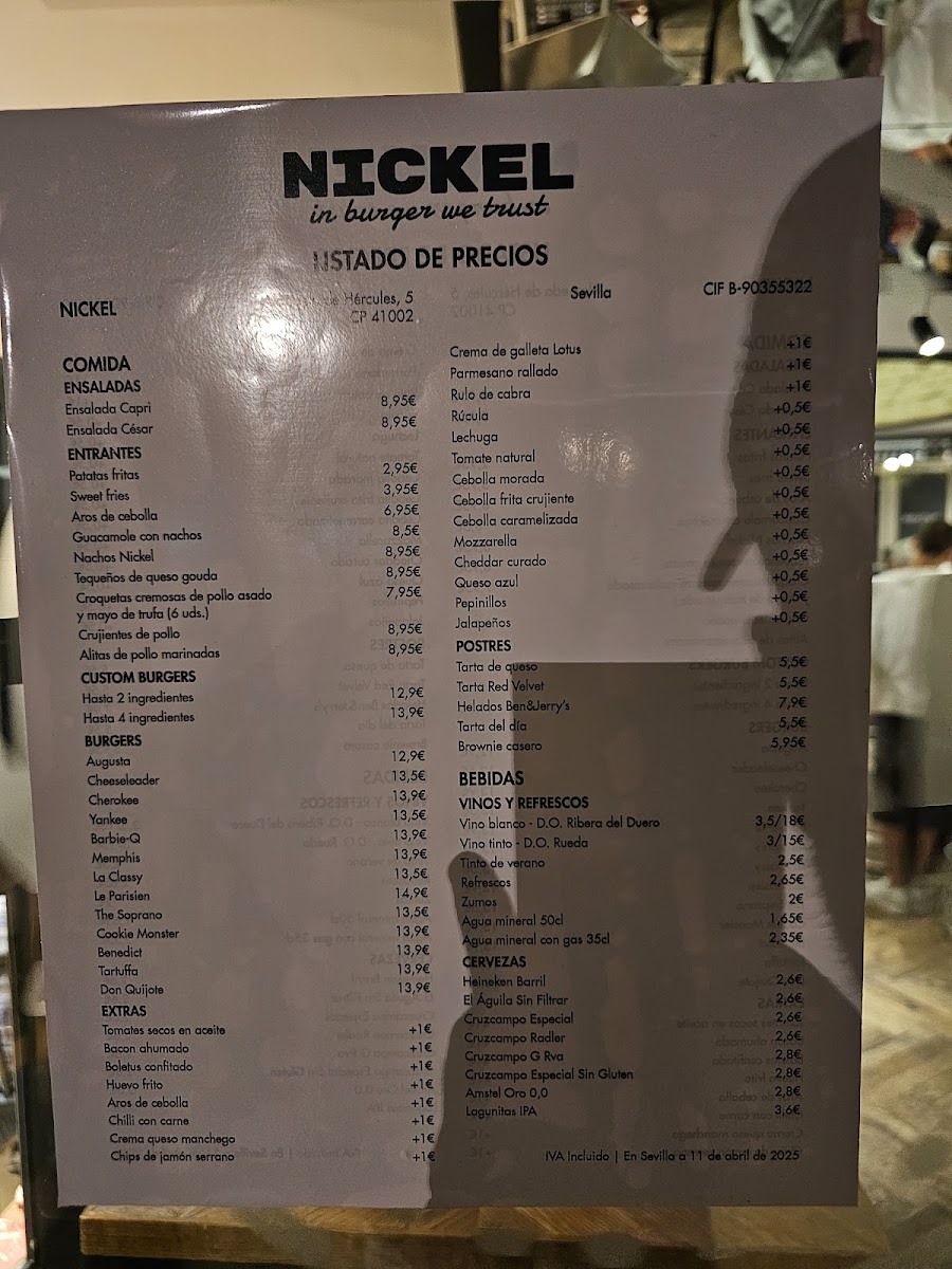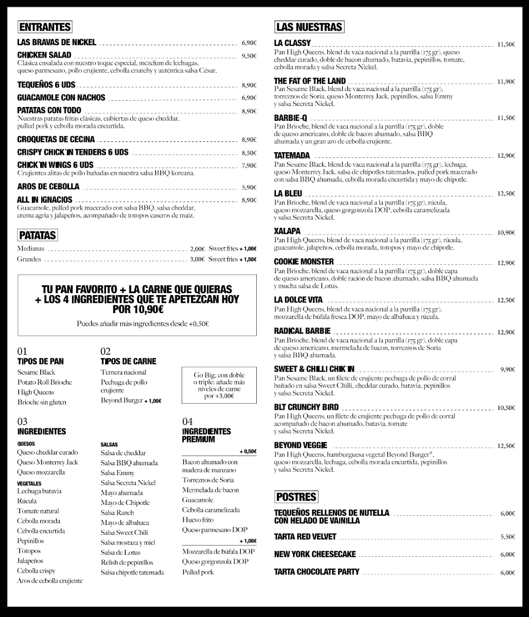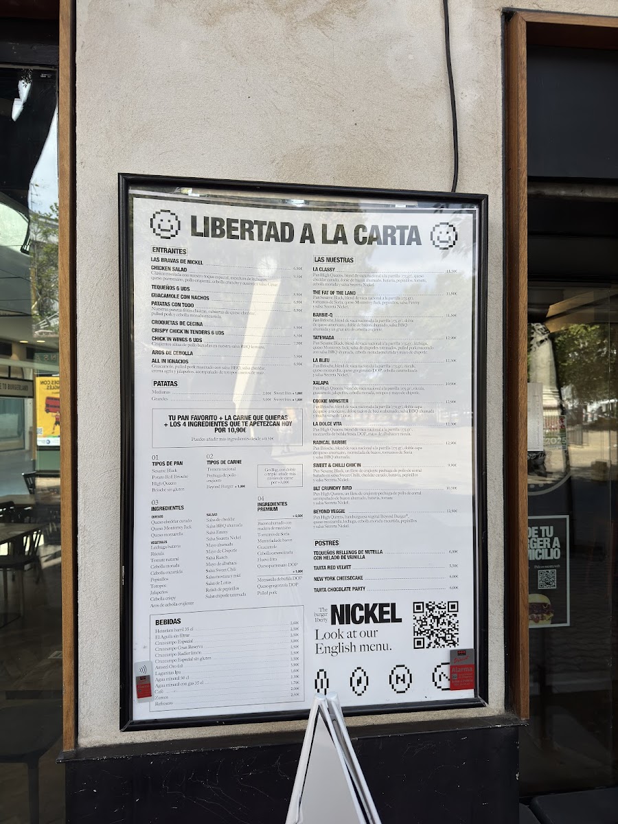 The menu also boasts enticing starters such as Crispy Chick'in Tenders and Las Bravas de Nickel, perfect for any palate. With excellent beverages including local beers and versatile soft drinks, you'll find something to complement your meal. Customers frequently commend the friendly service and quick turnaround times, making this eatery a must-visit for burger enthusiasts in Seville. Whether you're a local or just visiting, Nickel Burger Alameda promises a flavorful experience that you won't forget.